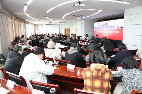 3月12日下午,学校公文写作与新闻宣传能力提升培训班开班,党办校办、宣传部全体人员,各学院、部门公文写作与新闻宣传分管领导及经办人员等100余人参加培训。