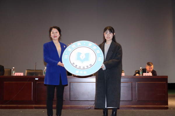 学院党总支书记姚善英为“读经典,享思辨”读书会指导老师段蓓授牌,标志着学院读书会正式成立。