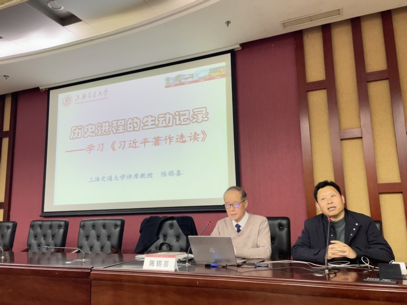 陈锡喜从主题教育“学思想、强党性、重实践、建新功”的总要求出发,谈学习习近平新时代中国特色社会主义思想的重要性以及学习方法。基于《习近平著作选读》的内容体系解读和分析,陈锡喜从“历史进程的生动记录”和“创新成果的集中反映”两个方面,生动而又深刻地阐释了习近平新时代中国特色社会主义思想如何在“应变局、布新局”中产生,又如何进一步指导中国新的具体实践的,是马克思主义认识论“从实践到认识再到实践”的生动体现,为广大师生如何“读原著、学原文、悟原理”进行了示范。