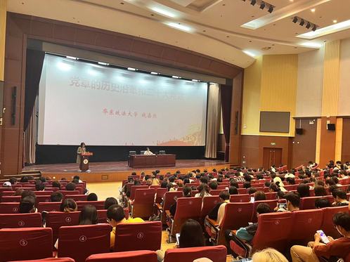 华东政法大学党委组织部副部长、副教授钱嘉熙作题为“党章历史沿革和党的二十大党章”的专题党课。她梳理了一大到党的二十大以来党章的一脉相承、整体联系、与时俱进、不断创新发展过程,讲述了党的二十大党章的历史地位和重大意义,并向学员们强调党章在推进党的事业和加强党的建设中发挥的重要作用。