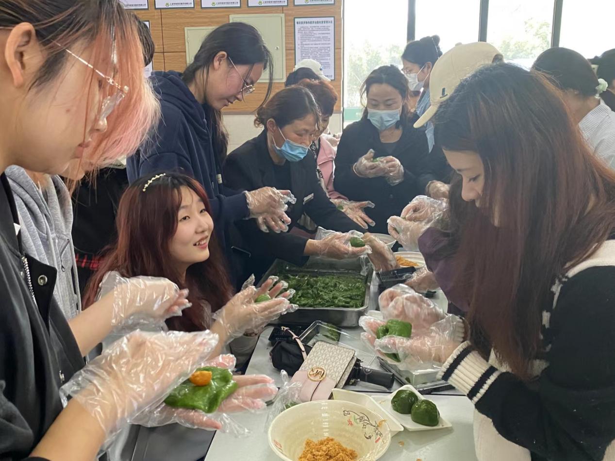 活动特别邀请具有丰富生活经验的宿舍管理员担任生活导师,通过手把手地教授同学们如何制作传统美食青团,带领大家领略传统文化,开展劳动教育,践行全员育人的工作理念。