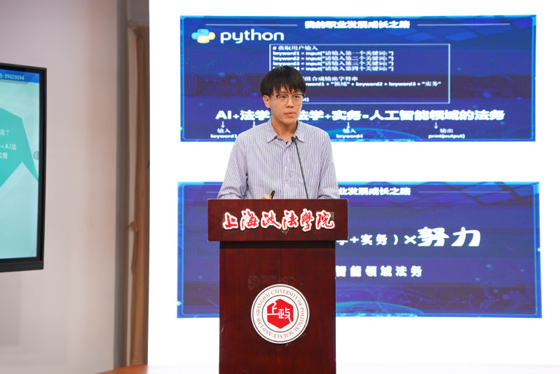 在交流发言环节,上海赛区总决赛优秀指导教师徐轶凡总结工作经验,就业赛道铜奖获奖选手曲承志分享了参赛历程和心得。