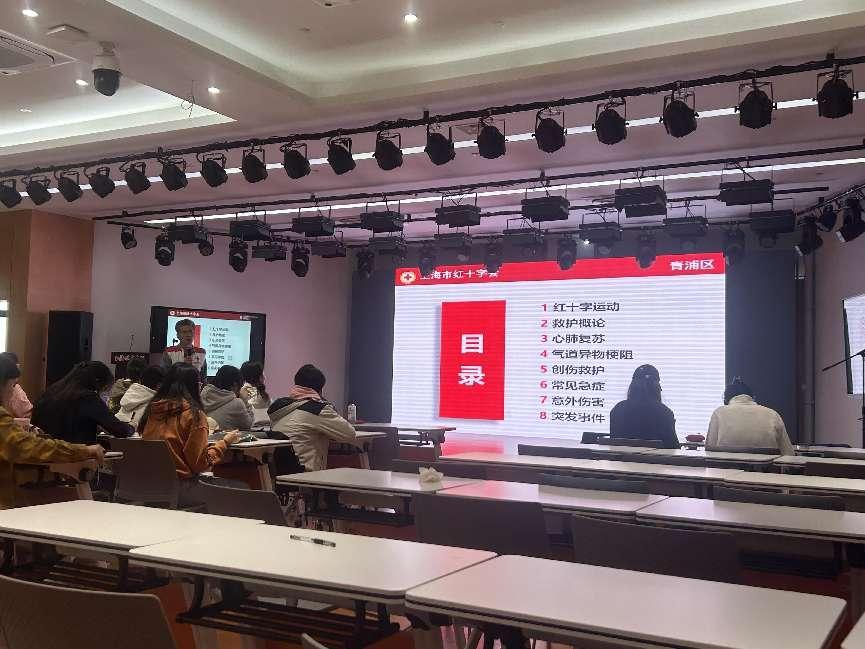 为进一步弘扬“人道、博爱、奉献”的红十字精神,提高学生应急救护意识和互救能力,共建平安校园,4月20日-21日,在青浦区红十字会的大力支持下,校红十字会举办红十字救护员培训班,54名在校学生参加培训。