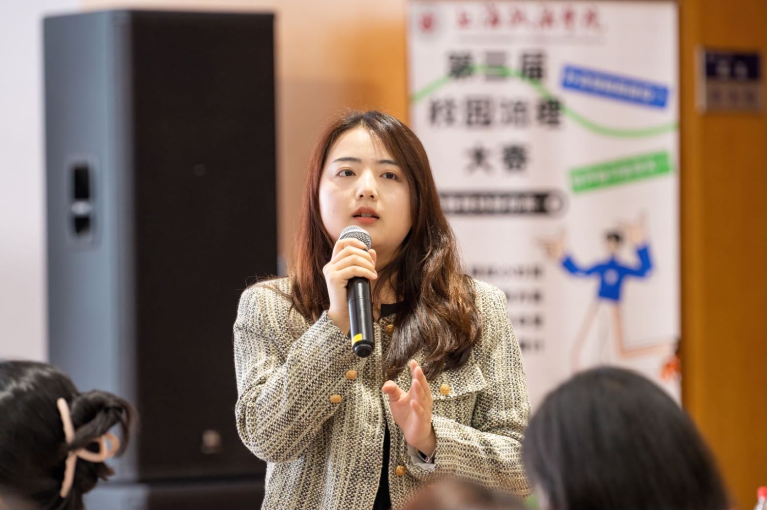 为生动践行“人民城市”理念,深入倾听学生诉求建议,搭建学校与学生之间的交流沟通平台,4月30日下午,我校第三届校园治理大赛决赛在成德楼举办。上海工程技术大学团委、上海农林职业技术学院团委,学校后勤保障处、教务处、学生工作部、信息化工作办公室等相关职能部门负责老师受邀担任评委,来自各学院自主报名的26名学生代表担任大众评委,近百名学生到场观摩。