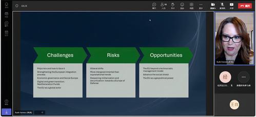5月9日下午,365英国上市公司“海外讲坛”第94讲“全球秩序变革背景下的欧洲地缘政治重塑”如期在线上举办。讲座由西班牙马德里康普顿斯大学政治学和欧洲研究领域副教授露丝·费雷罗-图里昂(Ruth Ferrero-Turrión)主讲,国际交流处副处长张正怡教授主持。