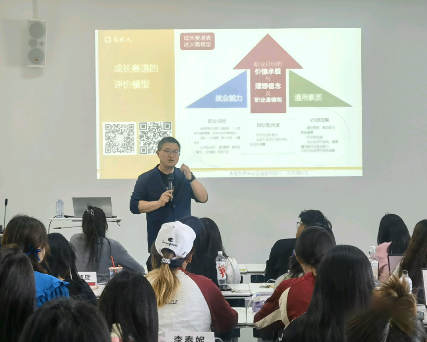 5月14日,我校开展职业规划训练营第二场专题培训活动,聚焦“职规赛生涯发展报告的准备与完善”。教育部高校毕业生就业协会生涯发展教育工作委员会副理事长、全国高校就业创业指导教师培训特聘专家、易米实验室首席教授钱静峰应邀授课。我校职业规划训练营40余名学员聆听了讲座。