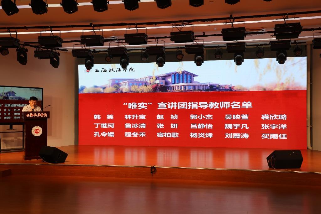 胡飞宇宣读了“唯实”宣讲团学生成员及指导教师名单。