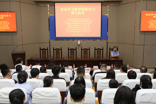 5月31日下午,学校党办校办党支部、中国-上合司法培训基地行政部党支部、上政附属东门小学党支部、上政第17、19学生党支部与上海市新收犯监狱办公室党支部、上海市司法警官学校办公室党支部联合开展“学党纪、强党性、知敬畏、聚合力”党纪学习教育联组学习活动。活动分为现场警示教育和党纪学习教育联学交流会两部分。