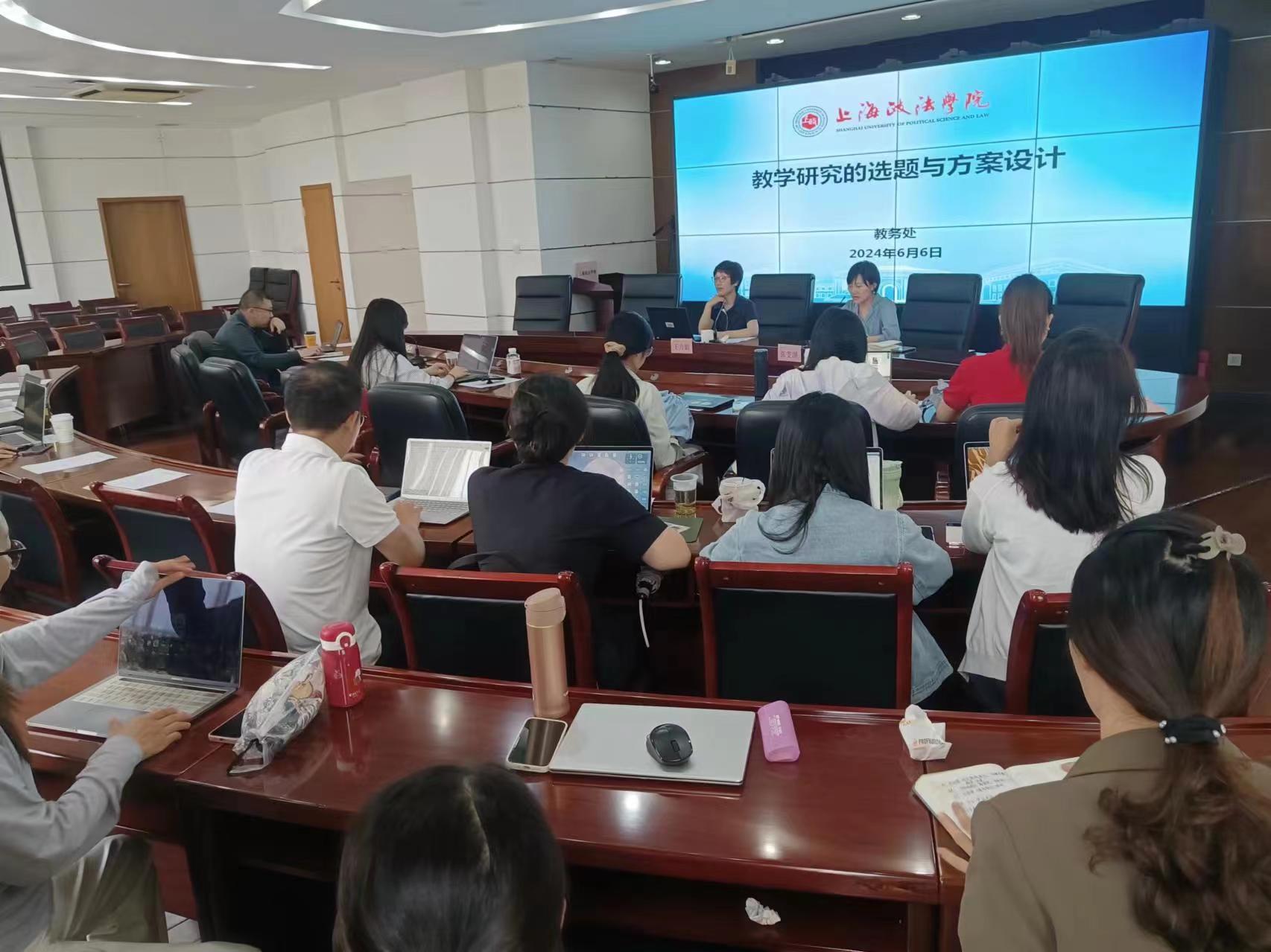 6月6日下午,教务处组织开展2024年新教师入职培训“校本研修”活动,邀请上海交通大学教学发展中心副研究员王力娟作题为“教学研究的选题与方案设计”专题讲座。学校“校本研修”教师、其他对教学研究感兴趣的教师及教务处相关人员参加讲座。讲座由教务处张雯淇主持。