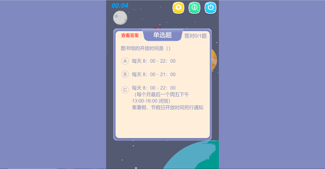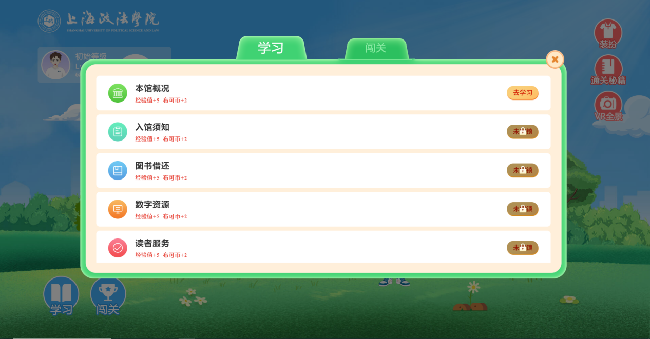 1. 点击学习按钮开始图书馆的学习啦,每学习完一个章节会解锁一个游戏关卡,学习和闯关都会获得相应的布可币和经验值。闯关游戏中会有试题的出现,请同学们认真作答,答对的题目越多获得的布可币就会越多哦~