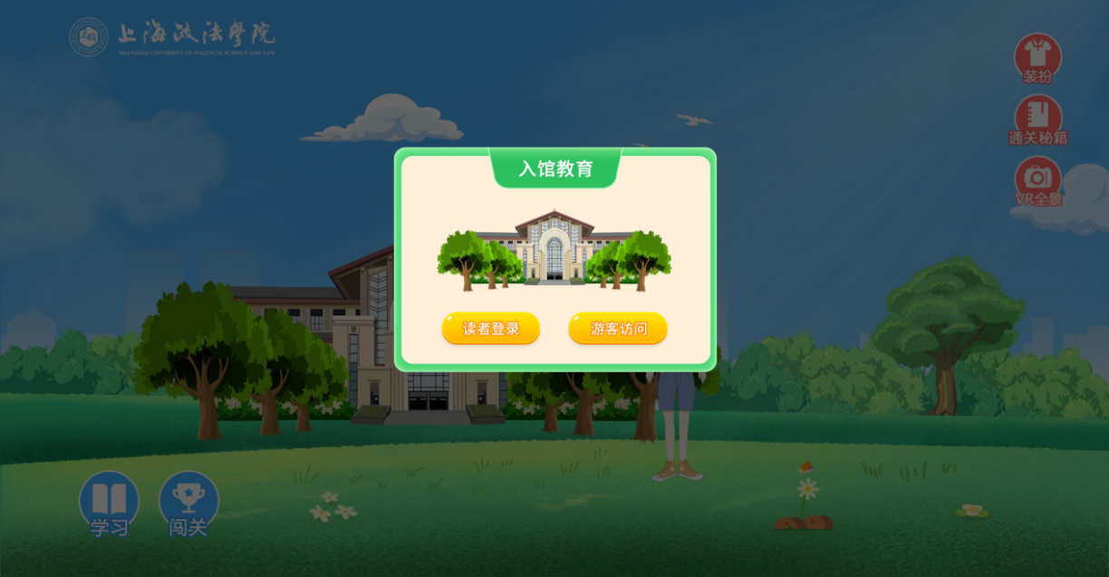 1. 进入首页,点选“学习”按钮,并输入个人信息进行登录。如果你只想浏览知识点,不参与“闯关”,可以点选“游客访问”,如需闯关请点击读者登录。