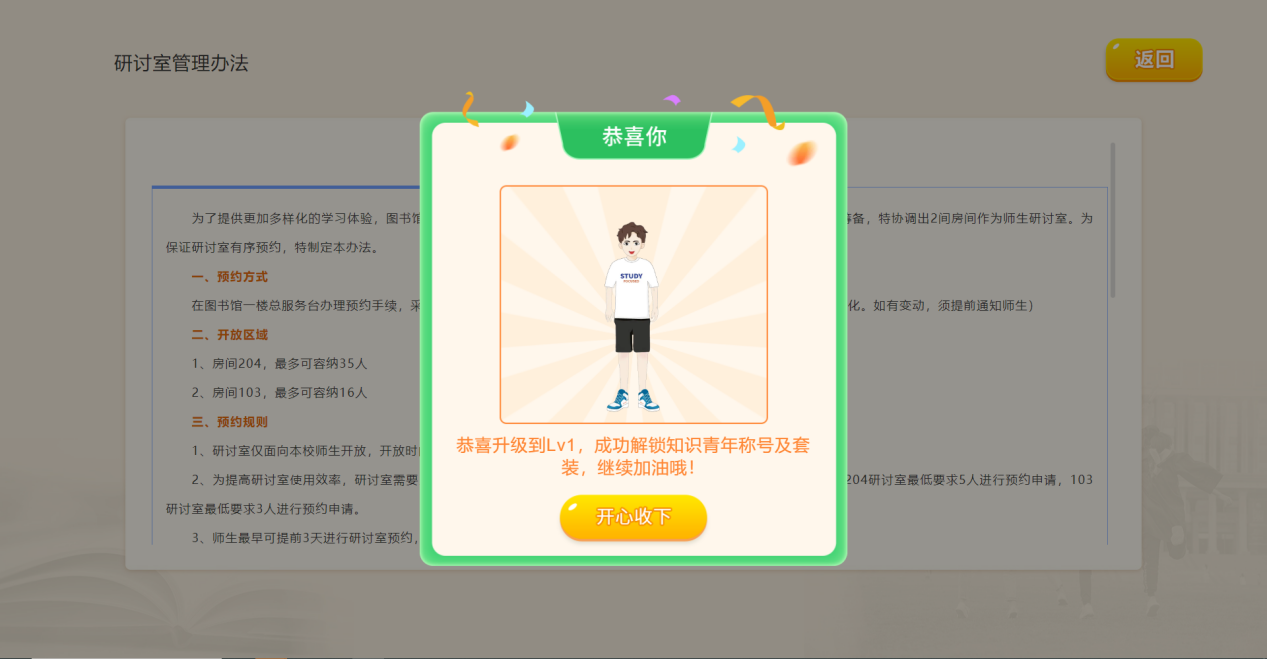 金秋送爽,翰墨飘香。为帮助同学们更好地了解图书馆的布局与功能,我们特地设计了“入馆教育”闯关系统,请同学们在闯关期限内积极参与,快人一步了解图书馆!闯关活动结束后,图书馆将根据同学们的闯关成绩排名进行奖励。