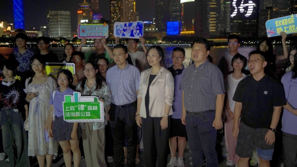 当晚,聚校友、迎新生法治公益亮灯在上海外滩举行,璀璨的灯光照亮夜空,为新生点亮上政梦想,为“律”森林建设顺利启动送去祝福。