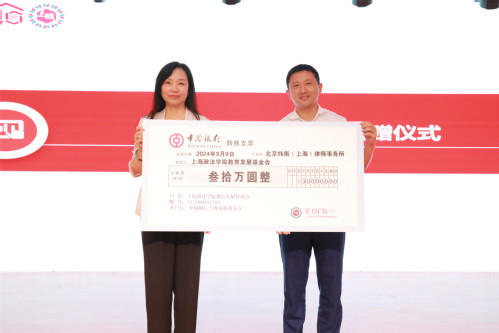 发布会上,刘晓红代表学校接受了第一批签约建设律所捐赠的善款;学校教育发展基金会秘书处汇报了项目建设方案,二级学院代表与长三角各地律协相关负责同志作了交流发言。