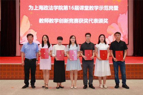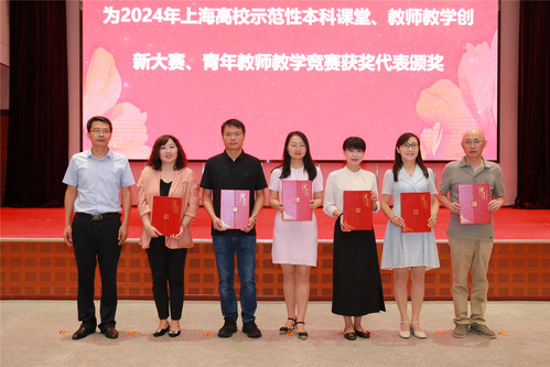 在全场热烈的掌声中,高志刚、郑少华、罗立刚分别为上海高校示范性本科课堂获奖教师、上海市高校教师教学创新大赛获奖代表、上海高校青年教师教学竞赛获奖代表、上海市高校教师教学创新大赛优秀组织奖,学校课堂教学示范岗暨教师教学创新竞赛获奖代表以及学校学术精英、学术新秀获得者颁奖。