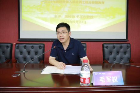 9月23日下午,我校2024年新进教师入职培训在汇知楼开班。副校长毛军权出席开班仪式并为新进教师作“学校史明校情 担使命勇奋斗”专题讲座。开班仪式由人事处处长、党委教师工作部部长韩同兰主持,20余名新进教师参加。