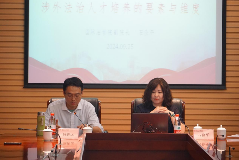 石俭平表示,在培养涉外法治人才的过程中,应当注重将法治思维与国际规则相结合,推进法治人才的国际交流与合作,增强法学教育的实用性与前瞻性,培育具有国际竞争力的法治人才。陈振云也结合自身经历讲解了国际交流的重要性以及语言学习的要点。