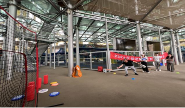“互动飞盘”项目包含四个小项目,分别是“飞盘投篮”“飞盘九宫格”“飞盘保龄球”“飞盘高尔夫”,需要队员依次完成四个项目累计积分。在这一项目中,队员认真练习,通过分享经验、技术交流等方式增进了彼此的了解和友谊。