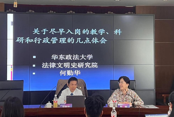 10月10日上午,华东政法大学原校长何勤华教授应邀为新进教师作“关于尽早入岗的教学、科研和行政管理的几点体会”专题讲座。讲座由人事处处长赵俊教授主持,新进教师20余人参加。