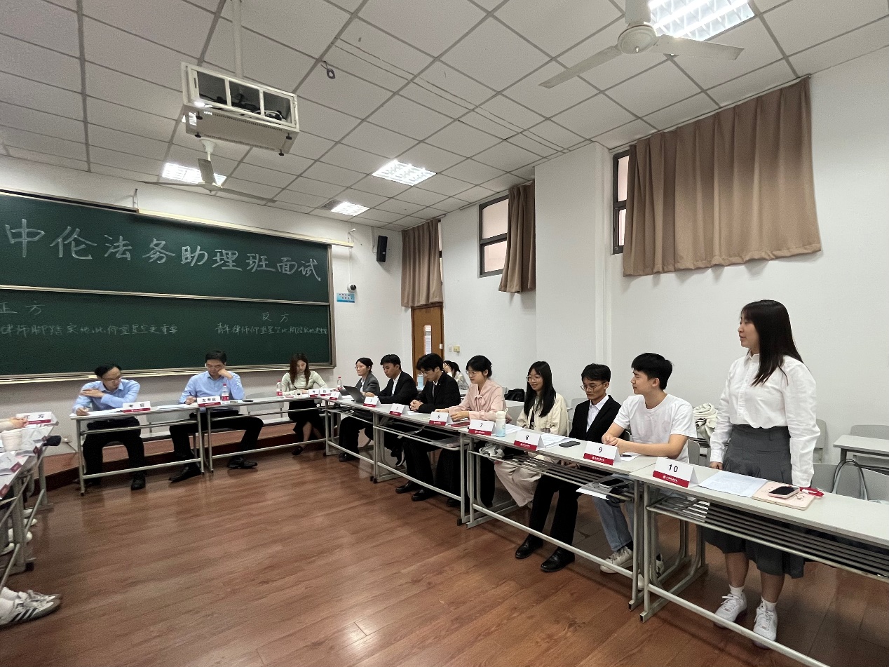 严谨细致,力保公正公平。面试前夕,教务处与中伦所进行了深入沟通与协商,共同制定了科学合理的面试方案。为确保面试的公正、专业和高效,教务处邀请中伦所资深律师与我校法学领域的专家学者共同组成面试考官团。各小组的考官阵容强大,包括中伦所权益合伙人纪超、非权益合伙人周曦澍及合规与政府监管部高级助理吴筠,我校法律学院副院长杨向东、国际法学院副院长石俭平、警务学院副院长杜雪晶,以及教务处实验实训中心教师。