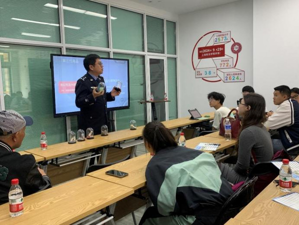 在交流活动中,潘警官详尽阐述了三代毒品的特性,着重强调了各类毒品对人体健康的严重威胁,普及了中国禁毒法律法规,并传授了预防和应对毒品风险的策略。现场还陈列了多样化的毒品实物模型,这些模型生动展现了毒品的外观特征及其分类体系,尤其聚焦于第三代新型毒品,旨在辅助国际学生更有效地辨识、预防并警觉这类新兴毒品的风险。为进一步提升活动的互动性和参与感,特别设计了互动问答环节,激励国际学生分享各自所知的毒品类型信息以及探讨其所在国家毒品滥用的现状。