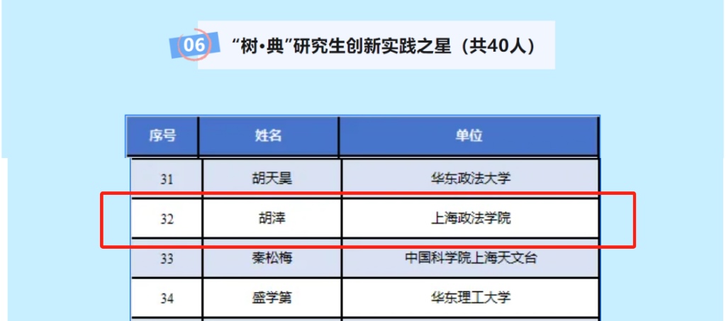 11月9日,“2024年长三角科学道德和学风建设论坛”在上海理工大学举办,长三角地区52家高校参与论坛,共话科学家精神与学风建设。经评审,我校经济管理学院2022级法经济学硕士研究生胡涬获评2024年“‘树·典’研究生创新实践之星”,成为我校首位获此荣誉的硕士研究生。