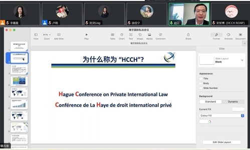 赵云教授介绍了海牙国际私法会议的发展历程、机构设置、主要功能,讲解了海牙国际私法会议的主要活动、关键议题、优势价值以及海牙公约的形成过程、海牙公约的全球化进程、中国与海牙国际私法会议等相关内容。之后,赵云教授就海牙国际私法会议在亚太区的发展、运营情况以及海牙国际私法会议在亚太区的影响力进行了简述。