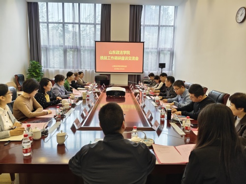 11月16日下午,山东政法学院党委(学校)办公室主任、党委统战部部长支剑带队来我校调研交流统战工作。校党委组织部统战部副部长周欣以及部分民主党派代表、工作人员参加座谈。