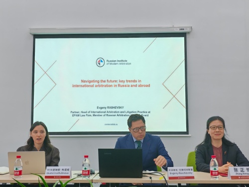 叶夫根尼·拉斯切夫斯基对我校的热情接待表示感谢,并介绍了俄罗斯现代仲裁协会近年来的发展历程,表示愿同我校在学术交流、联合培训、学生赴国际组织实习等方面深化合作,共同助力国际仲裁人才的培养。