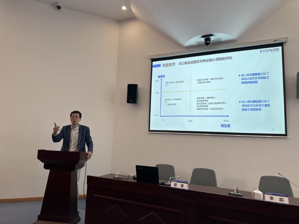 麦可思(北京)数据有限公司首席科学家、副总裁程星博士以新一轮本科教育教学审核评估为背景,以学校今年实施的“2023届毕业生培养质量跟踪评价”“2024年在校生成长与增值评价(含生源和德育发展)”“2019届毕业生培养目标达成与职业发展评价”“审核评估数据举证调研”4个调研项目的具体内容为切入点,通过对学校近几年各项数据进行纵向对比,与全国同类院校开展横向比较,分别从“办学方向与本科地位”“培养过程”“教师队伍”“学生发展”与“教学成效”五个方面对我校本科教育教学、人才培养质量的总体情况进行了分析与数据解读,并对我校推进本科教育教学审核评估工作提出了建议。