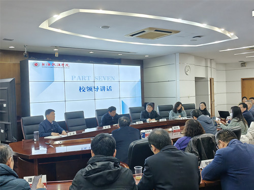教学质量督查与评估办公室主任李起对二级学院自评工作调研情况、各类活动安排、审核评估相关事项等内容进行汇报。教务处处长赵运锋对本科教育教学审核评估问题进行介绍。教务处副处长陈风光对本科教学运行口的重点工作进行安排。教务处副处长曾智平对本科教学研究与建设口的重点工作进行介绍。留学生工作办公室副主任周怡就留学生期末课程档案整理、课程安排情况、汉语水平考试等工作推进情况作了介绍。继续教育学院副院长程秀玲就学历教育的寒假工作及春季学期的工作安排进行汇报。研究生处处长卫磊汇报了研究生课程教学情况、毕业论文写作与管理推进、专项工作建设情况等内容。