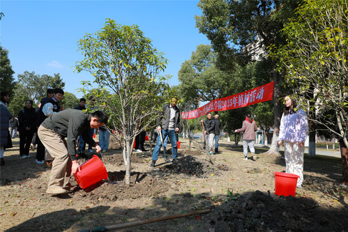 此次活动共吸引百余名师生参与。在专业人员的指导下,师生们分工协作,有序开展挖坑、培土、浇水等种植工作。在大家的共同努力下,一棵棵新栽种的树苗迎风挺立,为初春的校园增添了勃勃生机。活动不仅增强了师生的环保意识,也为校园生态环境建设作出了积极贡献。