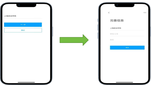 Step2:注册过程中完善单位及个人学工号、姓名等信息