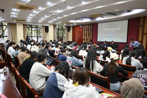 张丽详细介绍了公司有关国际研学实践的成果和平台,提到公司可提供多个国家和地区的国际研学实践机会,涉及语言学习、文化体验、专业实践等多个方面。学生将有机会走进国外知名高校,与当地师生进行交流互动,深入了解不同国家的教育体系和学术氛围。同时,还会安排丰富的文化考察活动,让学生亲身感受异国的历史文化和风土人情。此外,2023级翻译专业、曾参加策马·新加坡涉外法治研学团的白天在现场分享了自己的研学经历,让在场的同学们对国际研学实践有了更直观的认识和更浓厚的兴趣。