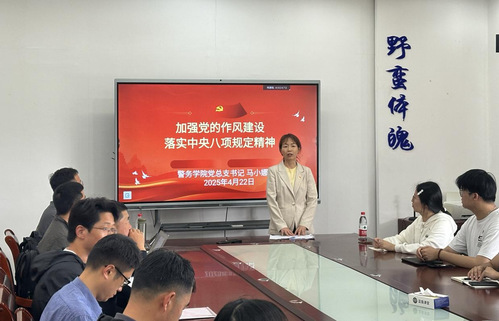 4月22日下午,警务学院召开深入贯彻中央八项规定精神学习教育专题党课,党总支书记马小娜为学院全体师生党员授课。