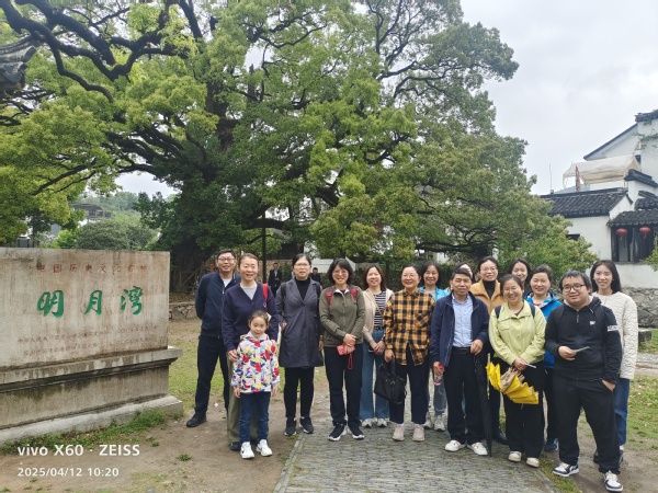 4月12日上午,微风细雨,老师们来到太湖之畔的明月湾古村。这座始建于唐代的古村落,以其保存完好的明清建筑和浓郁的水乡风情而闻名。漫步在青石板铺就的小巷中,大家驻足欣赏粉墙黛瓦间的雕梁画栋,聆听导游讲述古村的历史渊源。古村内的古街、古桥、古樟树、古码头等遗迹,仿佛将时光拉回到数百年前,让教师们在感受传统文化魅力的同时,也对历史的厚重有了更深的理解。