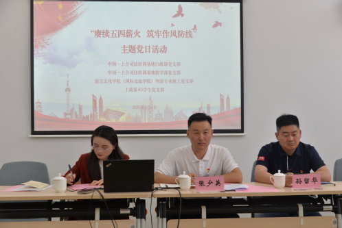 为深入学习贯彻习近平总书记关于党的建设的重要思想及习近平总书记关于青年工作的重要思想,5月6日下午,中国—上合司法培训基地行政部党支部联合教学部党支部、语言文化学院(国际交流学院)外语专业教工党支部、上政第40学生党支部共同开展“赓续五四薪火 筑牢作风防线”主题党日活动。语言文化学院(国际交流学院)党总支副书记周怡(主持工作)、党总支副书记魏洲阳出席活动,活动由中国—上合司法培训基地办公室专职副主任张少英主持,各支部书记、党员代表及“尚合实习”项目实习生党员代表参加活动。