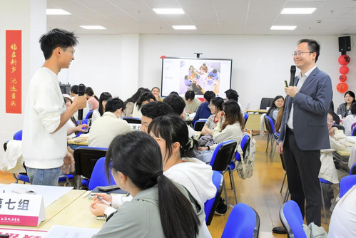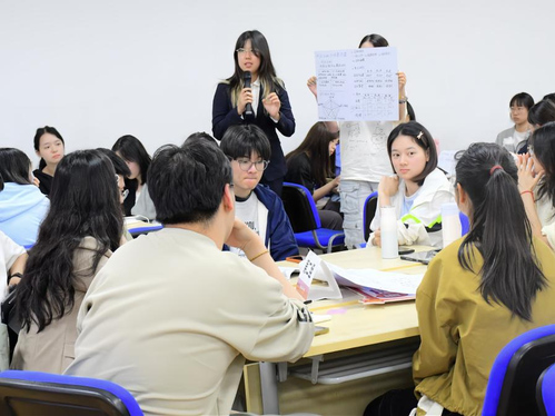 课堂上,王帅创新教学形式与方法,将同学们分为不同的小组,以沙盘模拟的形式开展团队讨论与协作。每个小组模拟一个支行,学员分别扮演支行行长、副行长、经理等角色,围绕支行面临的业务情况与决策问题展开深入分析。各小组热烈讨论,同学们踊跃发言,积极分享自己的见解。