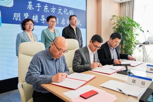 上海市社会心理学学会、上海东方心理健康研究院、上海立达学院相关负责人作为代表,共同签署“朋辈”项目合作协议,将在资源共享、实践探索、学术创新等领域协同发力。此次签约不仅是各方合作的起点,更标志着“朋辈”项目从规划迈向实质性落地阶段,为构建多层次心理健康服务体系注入强劲动力,开启朋辈互助守护心灵健康的崭新征程。