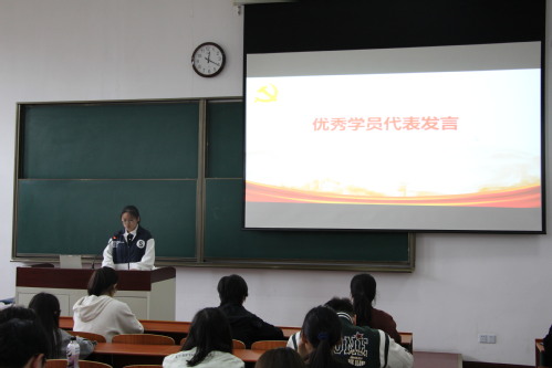 秦雪对本次培训班的教学基本情况进行了简要回顾,并宣读了本次培训班优秀学员名单。纪录片学院常佳琪作为优秀学员代表发言。她表示,作为入党积极分子,要在日常生活中严格要求自己,持续深入学习党的理论知识,发挥模范带头作用,不断提升自我,以赤诚之心投身党和国家建设伟业。
