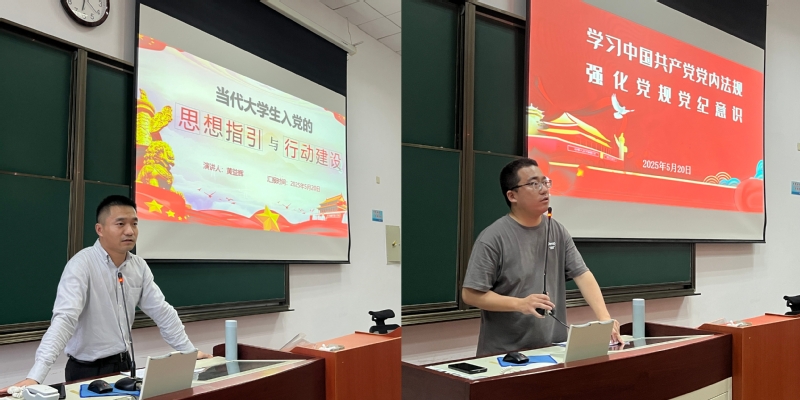 开班典礼后,党委宣传部理论学习专项组黄益辉和董敏维分别作“当代大学生入党的思想指引与行动建设”和“学习党内法规,强化党规党纪意识”的专题讲座。