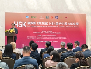 5月11日,“第五届俄罗斯HSK留学中国与就业展”开幕式在莫斯科中国贸易中心举行,中国驻俄罗斯使馆教育公参曹士海、莫斯科国立语言大学校长伊琳娜·克拉耶娃、主办方汉考国际副总经理刘小龙等出席。毛军权作为中国高校代表在开幕式上致辞,他指出,莫斯科与上海因“一带一路”紧密联动,教育是“架设友谊桥梁的工程师”,期待通过HSK考试吸引更多俄青年来华,共促中俄教育合作之树常青。毛军权在发言中也介绍了我校来华留学办学、与俄罗斯高校国际交流等情况,展示了“留学上政”品牌。俄罗斯展会观展人数逾五千人,创下在俄举办的中国教育展最高纪录。我校代表在展览中与参展学生、家长、俄罗斯中学等开展了一对一洽谈,接受众多俄罗斯当地学生的留学咨询。