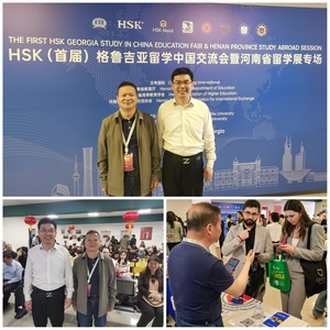 5月17日,“首届格鲁吉亚HSK留学中国交流会”在第比利斯举办,格鲁吉亚阿尔特大学孔子学院中方院长张稳刚指出,中文已纳入格鲁吉亚国民教育体系,教育合作前景广阔。我校代表团通过图文展示、互动答疑等形式推介“留学上政”政策与专业选择,吸引200余名学生及家长咨询。次日,代表团参访格里戈·罗巴基斯大学,就中文推广、校际合作、人才培养等方面进行了深入的交流。