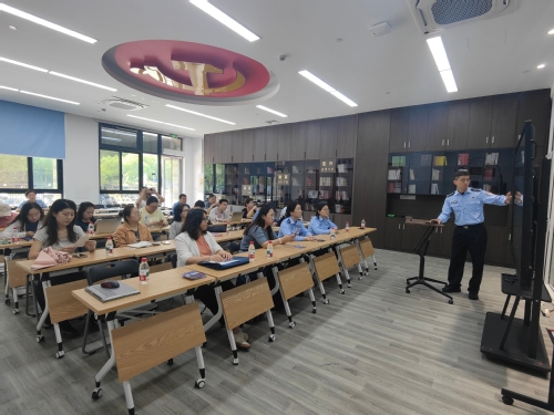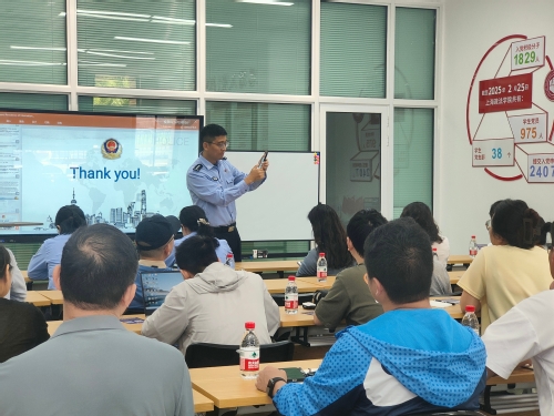 在培训活动中,朱森警官结合自身在出入境管理领域的丰富实战经验和专业理论素养,系统解读了我国关于来华留学生管理的最新政策法规,重点围绕签证管理、居留许可、毒品预防教育、勤工俭学等关键环节进行了深入剖析,并就日常工作中的常见问题和操作规范进行了详细指导。