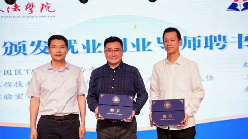 活动中,高志刚为企业导师代表大成中国区TMT行业联合牵头人赵云虎、上海工程技术大学智能制造及数字化应用研发中心主任王琪、易米实验室首席技术官颜志展颁发聘书。赵运锋为微专业训练营授班旗。