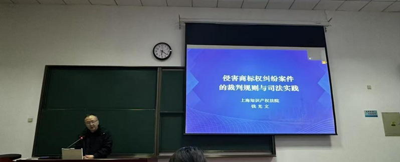 钱光文庭长以“注册商标权”为主题,将课程内容划分为三个主要部分:侵害商标权纠纷案件的总体概况、商标的本质与商标专用权的保护,以及侵害商标权行为的构成要件。课程以侵犯商标权案件的审理情况为切入点,通过横向对比各国商标法的定义,提炼出商标的本质在于显著性这一共性特征,并对此进行了深入探讨。钱法官强调,商标权保护的核心在于特定标志的显著性及其所承载的商誉。此外,他还详细分析了商标侵权认定的关键环节,重点讲解了“是否属于商标性使用”和“是否具有混淆可能性”这两个核心要件,帮助同学们构建起系统化且精细化的商标权侵权认知体系。