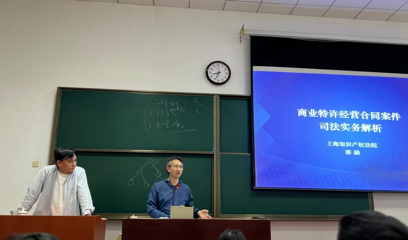 邵勋法官深入剖析了特许经营的五大核心法律特征,包括经营资源整体许可、特许经营费用收取、被特许人独立运营、统一经营模式以及合同的持续性。他重点区分了特许经营合同与商标许可、经销、直销等合同之间的关键差异,并着重阐述了特许经营中的信息披露义务、单方解除权、特许人资质要求及其对合同效力的影响等关键法律问题。通过生动的案例分析和互动提问,邵勋法官不仅对法律条文进行了详尽解读,还通过还原真实商业场景,帮助同学们全面掌握特许经营合同的法律框架和实务操作技巧,同时引导他们学会如何有效规避合同风险、维护自身合法权益。