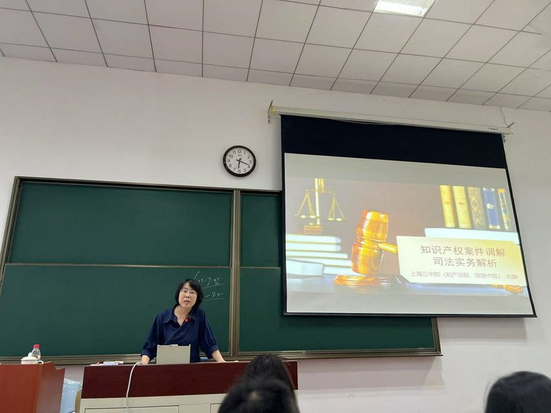 刘静法官深入解析了知识产权案件调解的实务要点,并提出了“三看”方法论:一看权利状态,需明确权利的归属、许可类型以及被许可人的诉权;二看侵权与否,应梳理主要的抗辩事由,例如是否未落入保护范围、权利用尽、现有设计或技术、合法来源等,同时强调技术事实认定的重要性;三看如何化解,需确定侵权责任主体与范围,并考虑赔偿数额的酌定因素,例如注意专利到期、制造商责任范围,以及调解金额可低于法定下限等特殊情形。此外,刘静法官还提及了区块链技术在保障调解协议效力方面的应用。通过分享实务经验和典型案例分析,她深入浅出地讲解了知识产权调解案件中的核心争议点与问题解决路径,使同学们受益匪浅。