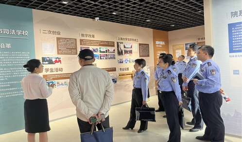 在姚善英和杨铠的陪同下,夏阳戒毒所政工支部党员还参观了我校校史馆,对我校在学生培养、学术研究、对外交流等领域取得的高质量发展成果给予高度赞扬。