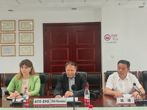 刘宪对诺伊曼教授及姚博院长一行的来访表示欢迎,并详细介绍了经济管理学院的发展历程、学科建设、师资力量、人才培养及对外交流等情况。夏甘霖介绍了我校在国际化建设及涉外法治人才培养方面取得的成绩,期待双方在未来实现更紧密、更深层次的合作,共谋发展新路径。